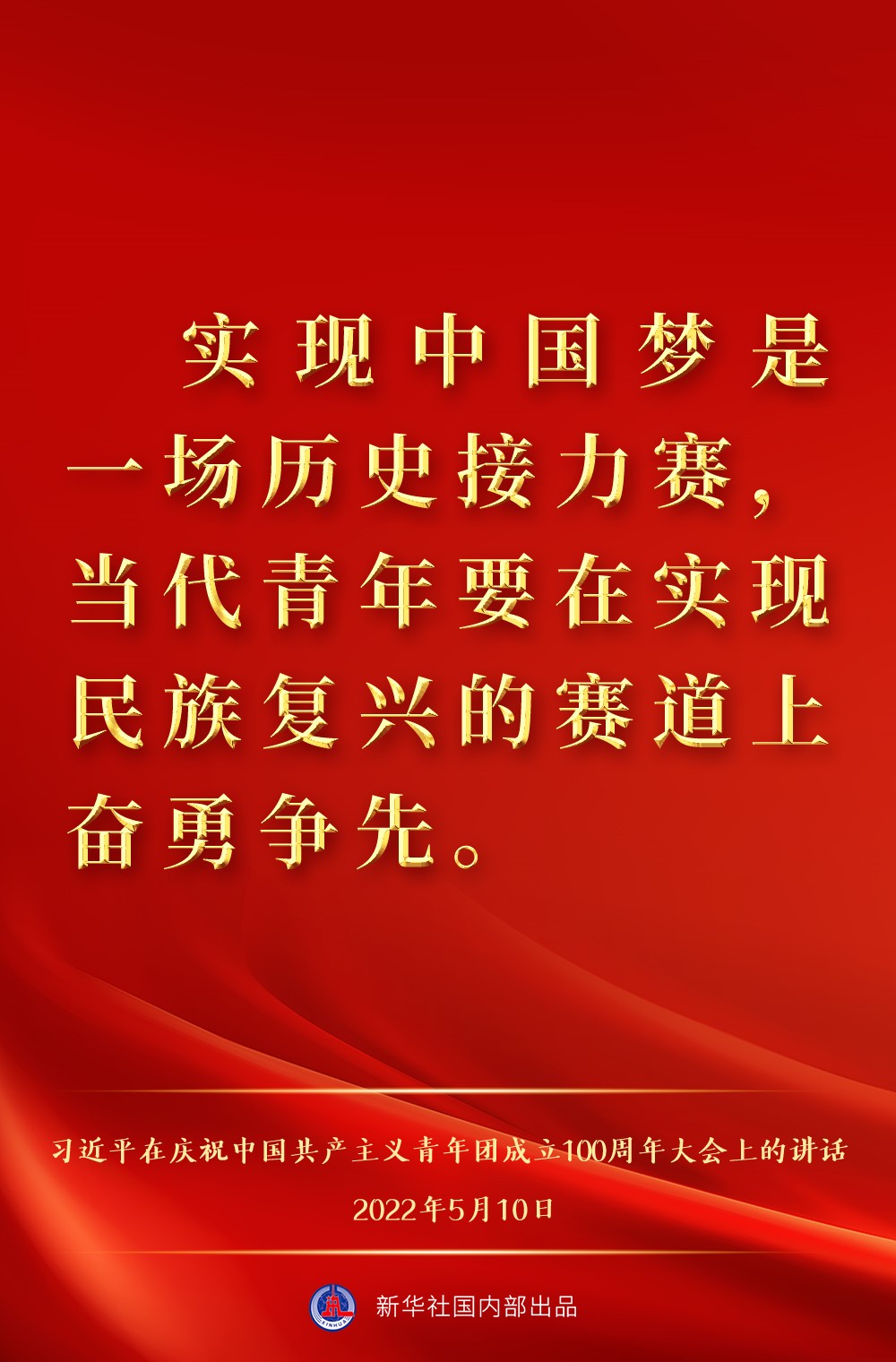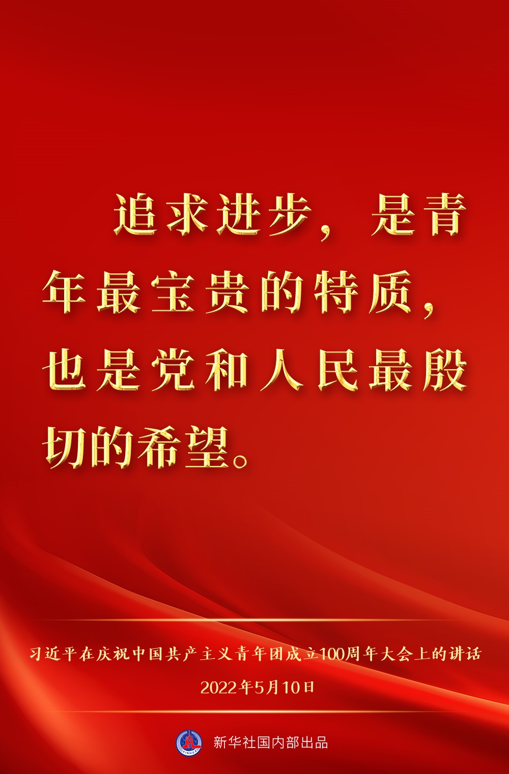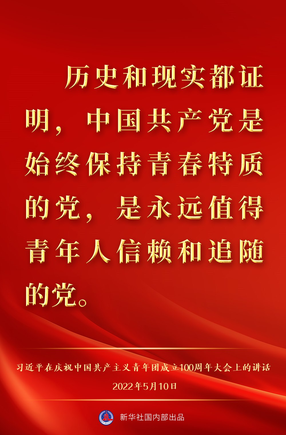 5月10日上午,中共中央總書記、國家主席、中央軍委主席習(xí)近平出席慶祝中國共產(chǎn)主義青年團成立100周年大會并發(fā)表重要講話,一起來看金句。