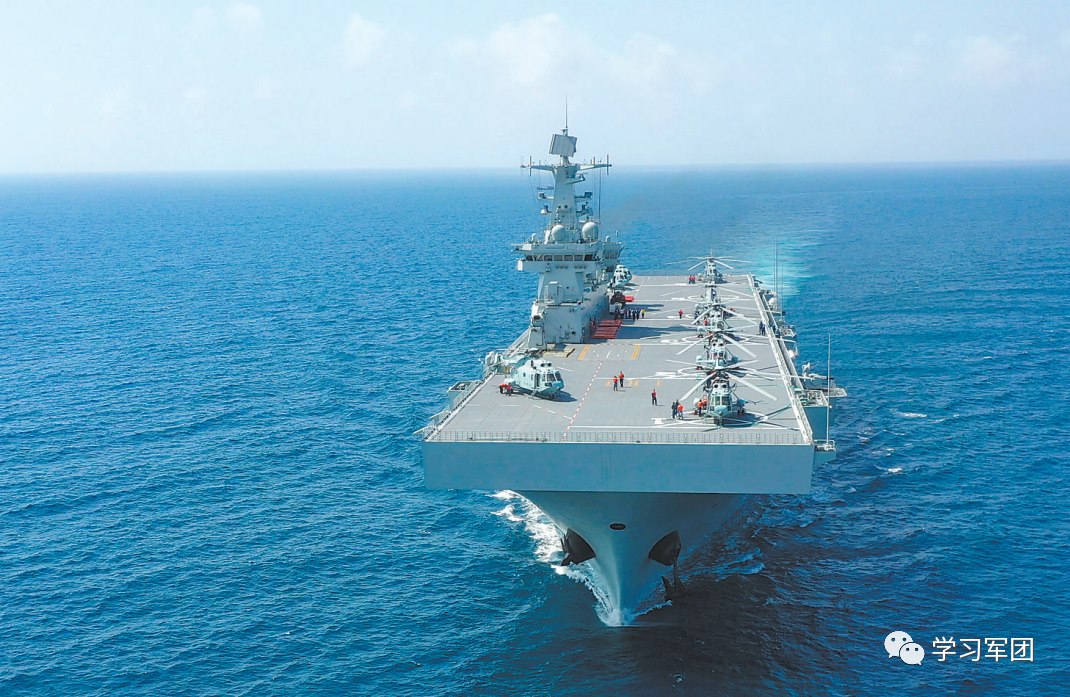 “新時(shí)代,在一茬茬登陸艦官兵的接續(xù)奮斗中,夢(mèng)想照進(jìn)現(xiàn)實(shí):國(guó)產(chǎn)兩棲攻擊艦逐步形成戰(zhàn)斗力,兩棲作戰(zhàn)兵力運(yùn)用方式不斷拓展,兩棲投送能力穩(wěn)步提升?!?/p>
