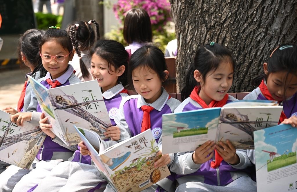 在她的校園里,有一棵“長滿書的大樹”,掛滿了《神筆馬良》《西游記》《可愛的中國》等經(jīng)典書籍。教學(xué)樓走廊里、教室里,隨處可見各種圖書。踏著閱讀的階梯,祖國的花朵茁壯成長。