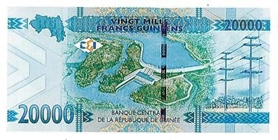 △在幾內(nèi)亞央行發(fā)行的該國最大面值兩萬幾郎紙幣上,印著中國長江三峽集團有限公司總承建的凱樂塔水電站。