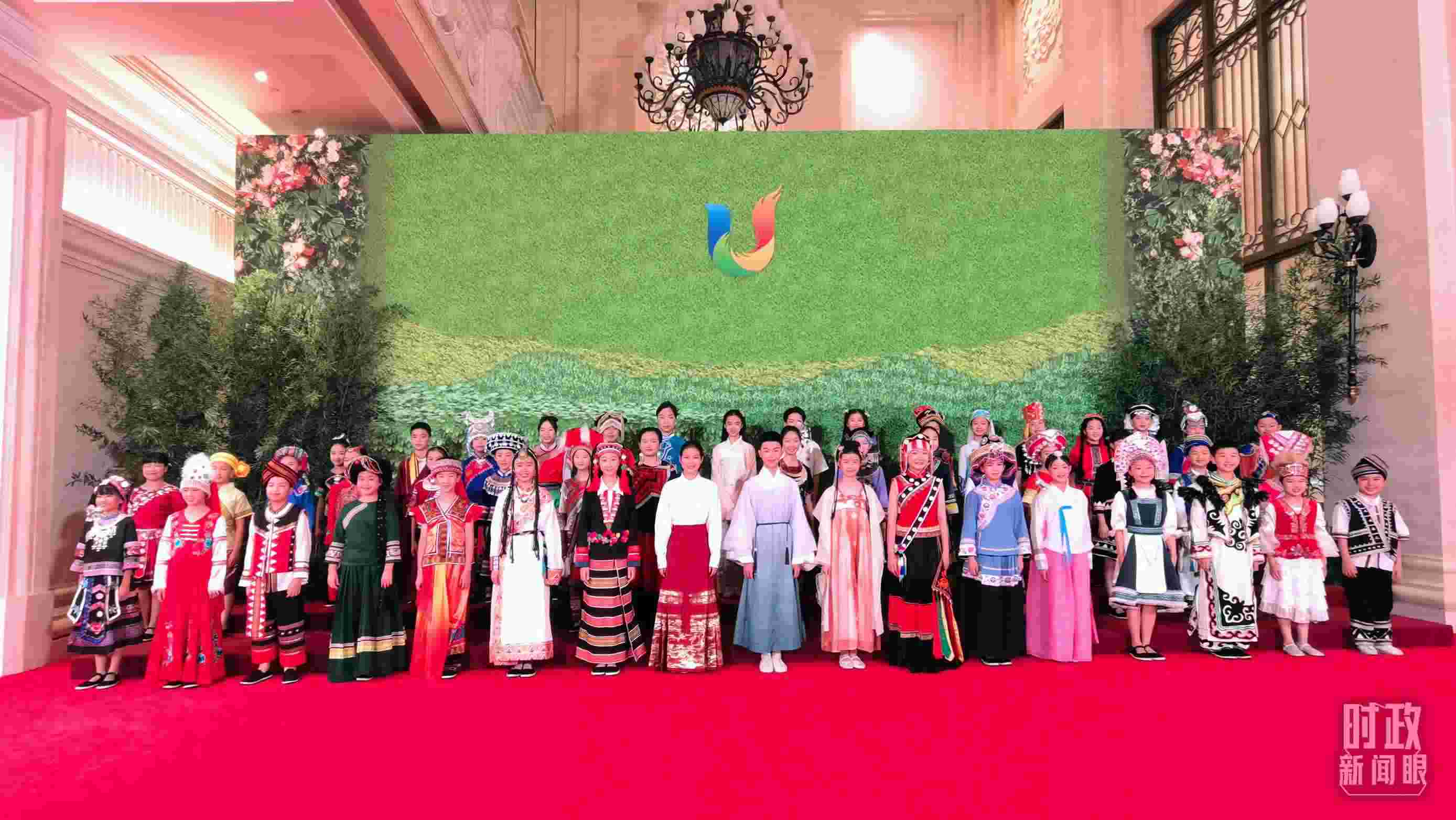 △50名少年兒童唱起四川民歌《太陽出來喜洋洋》歡迎國際貴賓。(總臺央視記者韓銳拍攝)