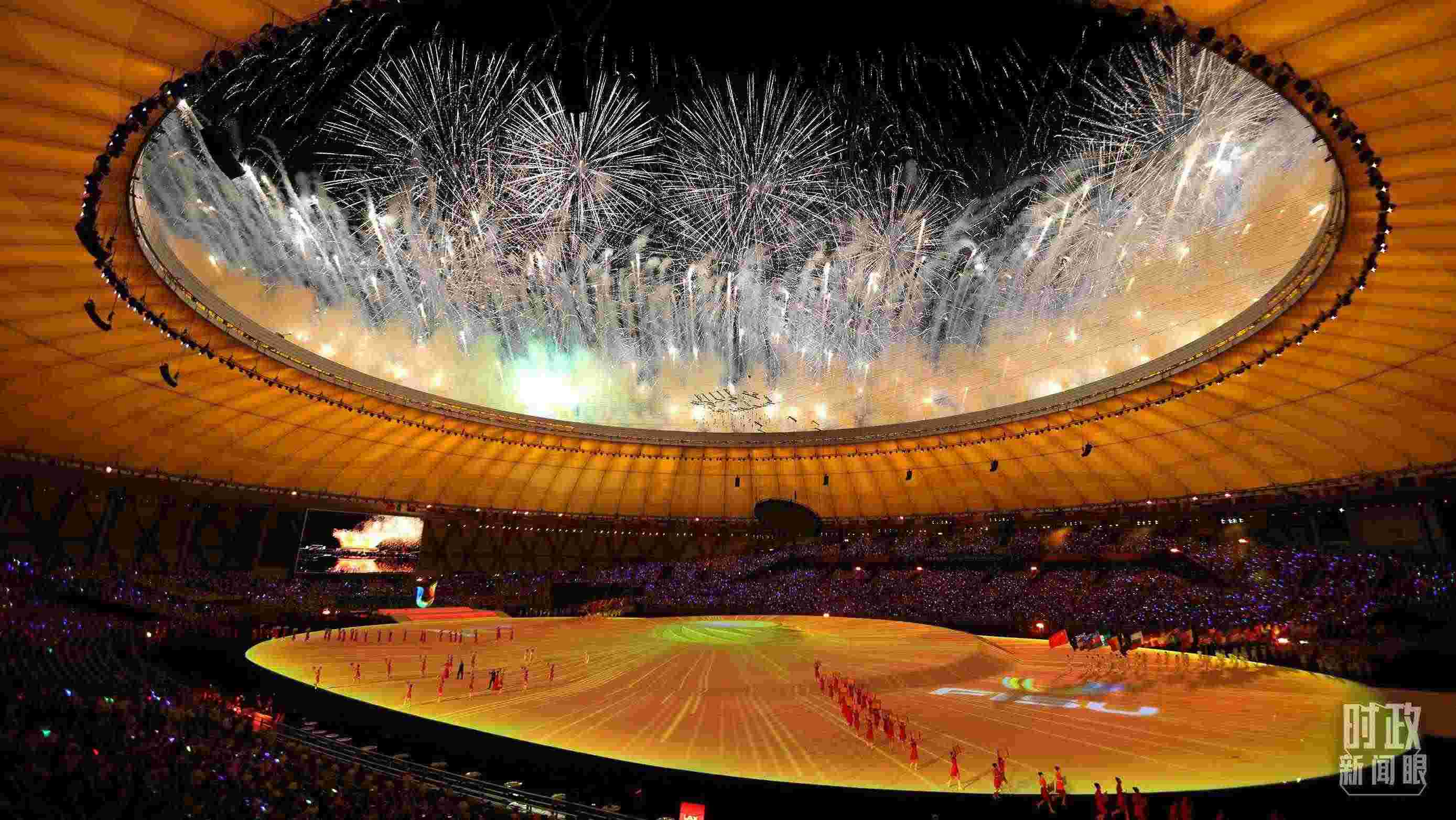 △開幕式現(xiàn)場的焰火璀璨。(總臺央視記者魏幫軍拍攝)