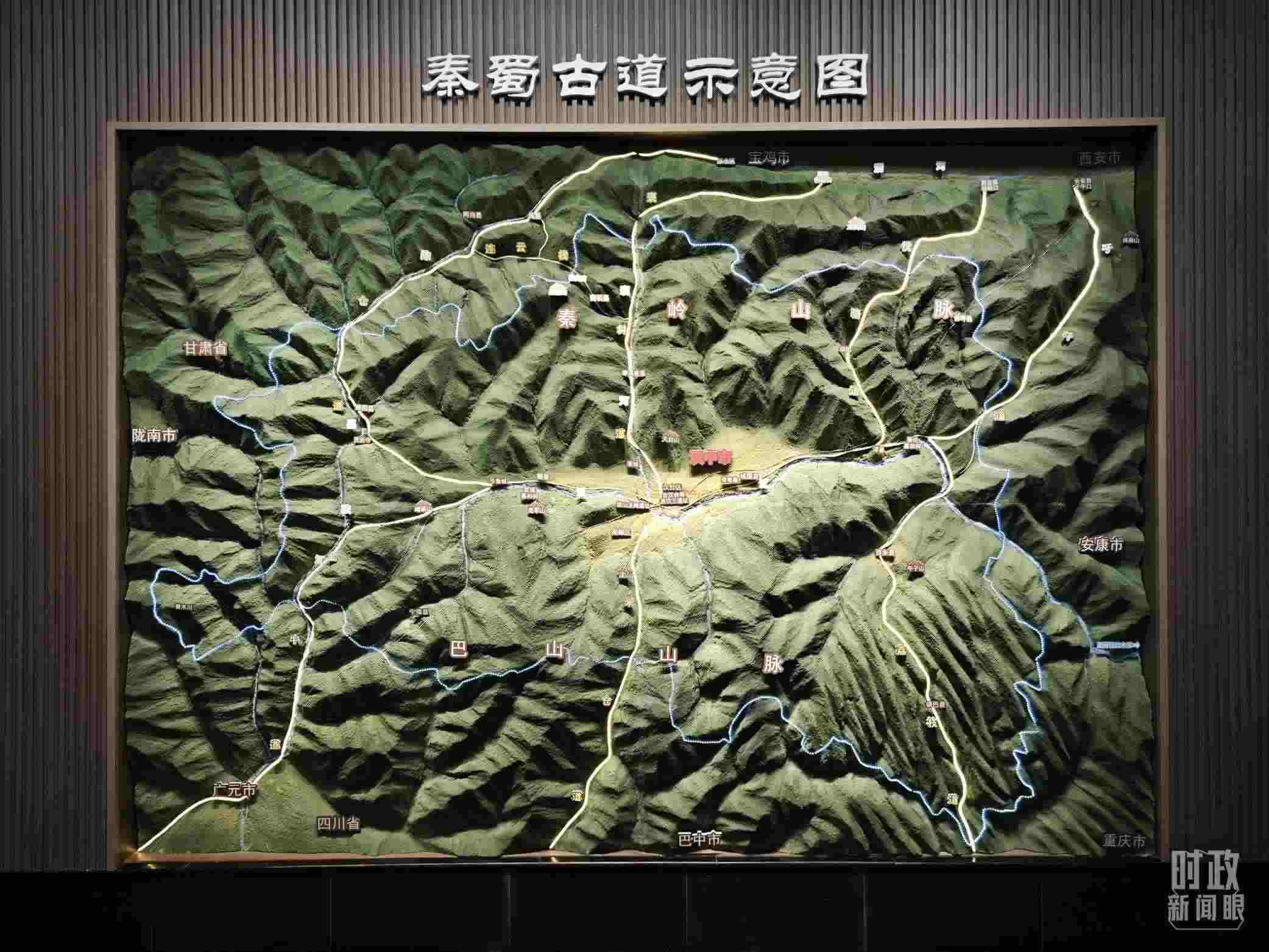 △漢中市博物館內(nèi)展示的秦蜀古道示意圖。(總臺(tái)央視記者黎兵拍攝)