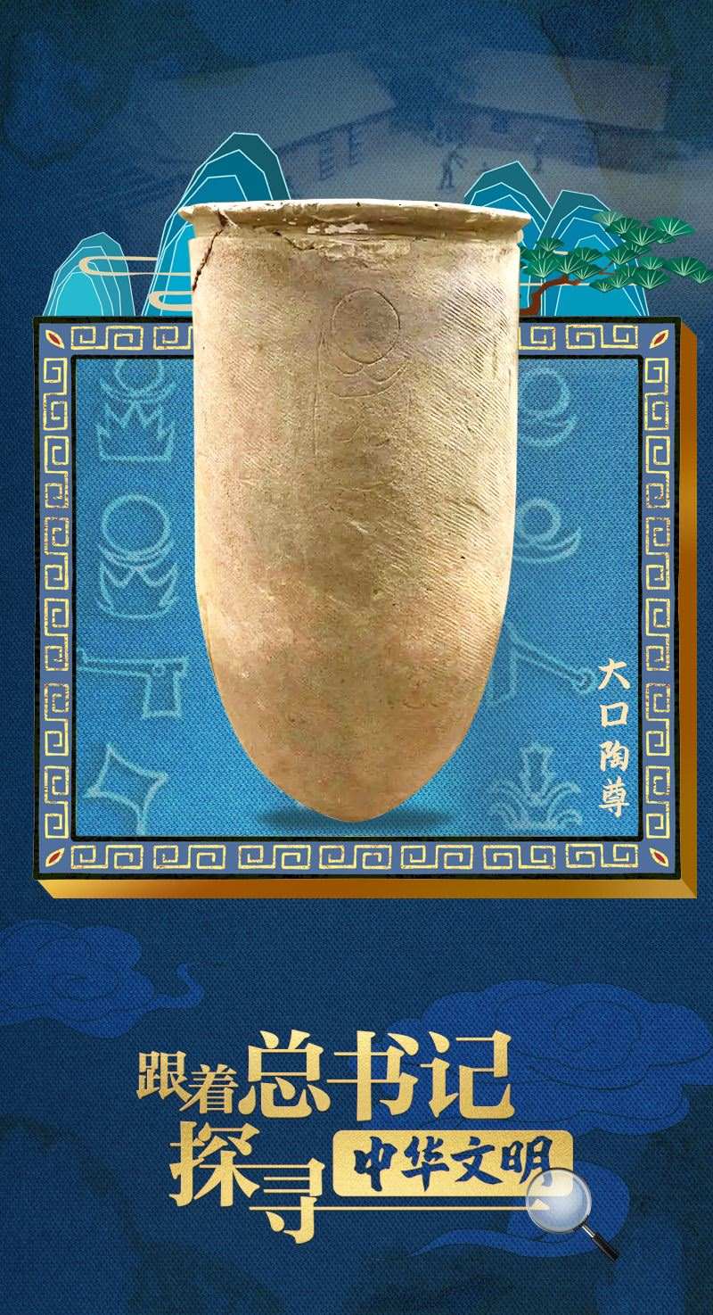 2023年6月2日,習(xí)近平總書記來到中國歷史研究院考察調(diào)研。展廳內(nèi),總書記沿“歷史大道”前行,仔細(xì)詢問最新考古發(fā)掘成果和文物展品保護(hù)情況。講解員指著一件陶器展品向總書記介紹:“這是一件出土于安徽蒙城新石器時代尉遲寺遺址的大口陶尊,距今大約4800年?!笨倳浽儐枺骸爸袊鞘澜缟咸掌髌鹪醋钤绲膰覇??”