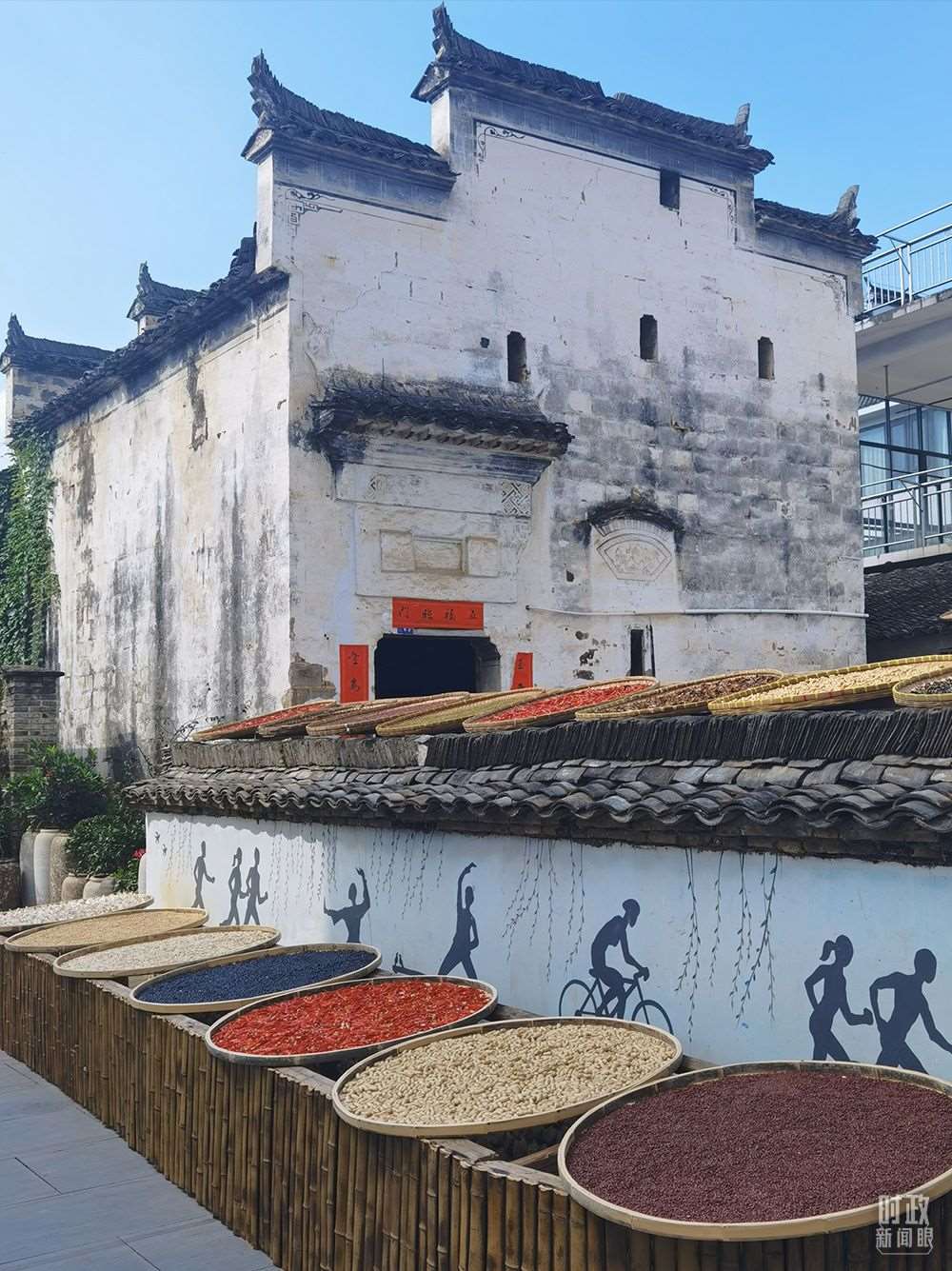 △婺源鄉(xiāng)村的曬秋農(nóng)俗。(總臺(tái)央視記者鐘銳拍攝)