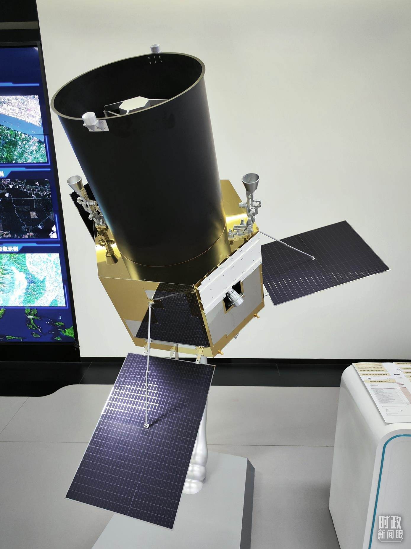 △中國(guó)-東盟信息港展示的南寧一號(hào)衛(wèi)星。(總臺(tái)央視記者李輝拍攝)