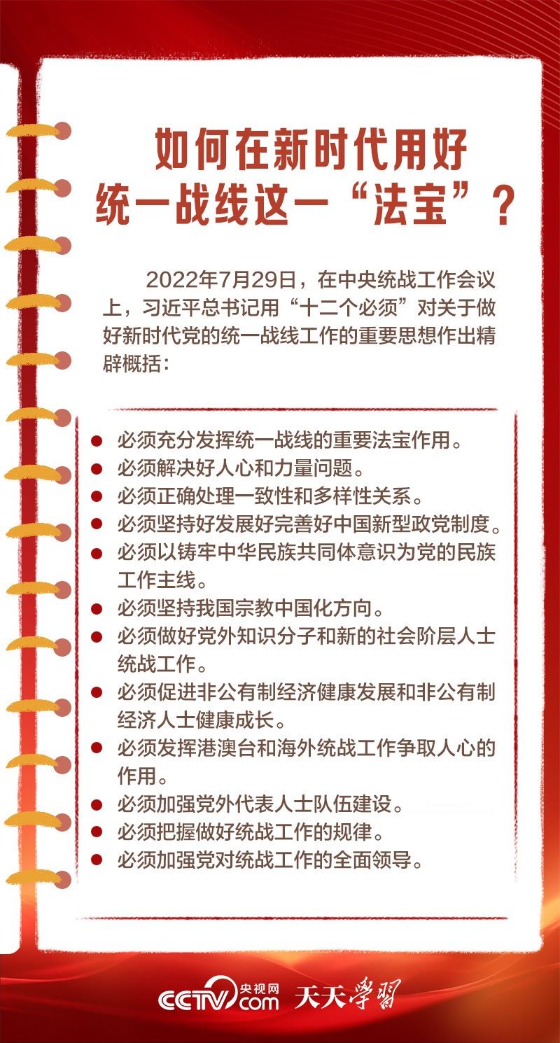 1月16日出版的第2期《求是》雜志發(fā)表了習(xí)近平總書記的重要文章《完整、準確、全面貫徹落實關(guān)于做好新時代黨的統(tǒng)一戰(zhàn)線工作的重要思想》,該文是習(xí)近平總書記2022年7月在中央統(tǒng)戰(zhàn)工作會議上講話的一部分。文章指出,統(tǒng)一戰(zhàn)線是黨克敵制勝、執(zhí)政興國的重要法寶,是團結(jié)海內(nèi)外全體中華兒女實現(xiàn)中華民族偉大復(fù)興的重要法寶,必須長期堅持。