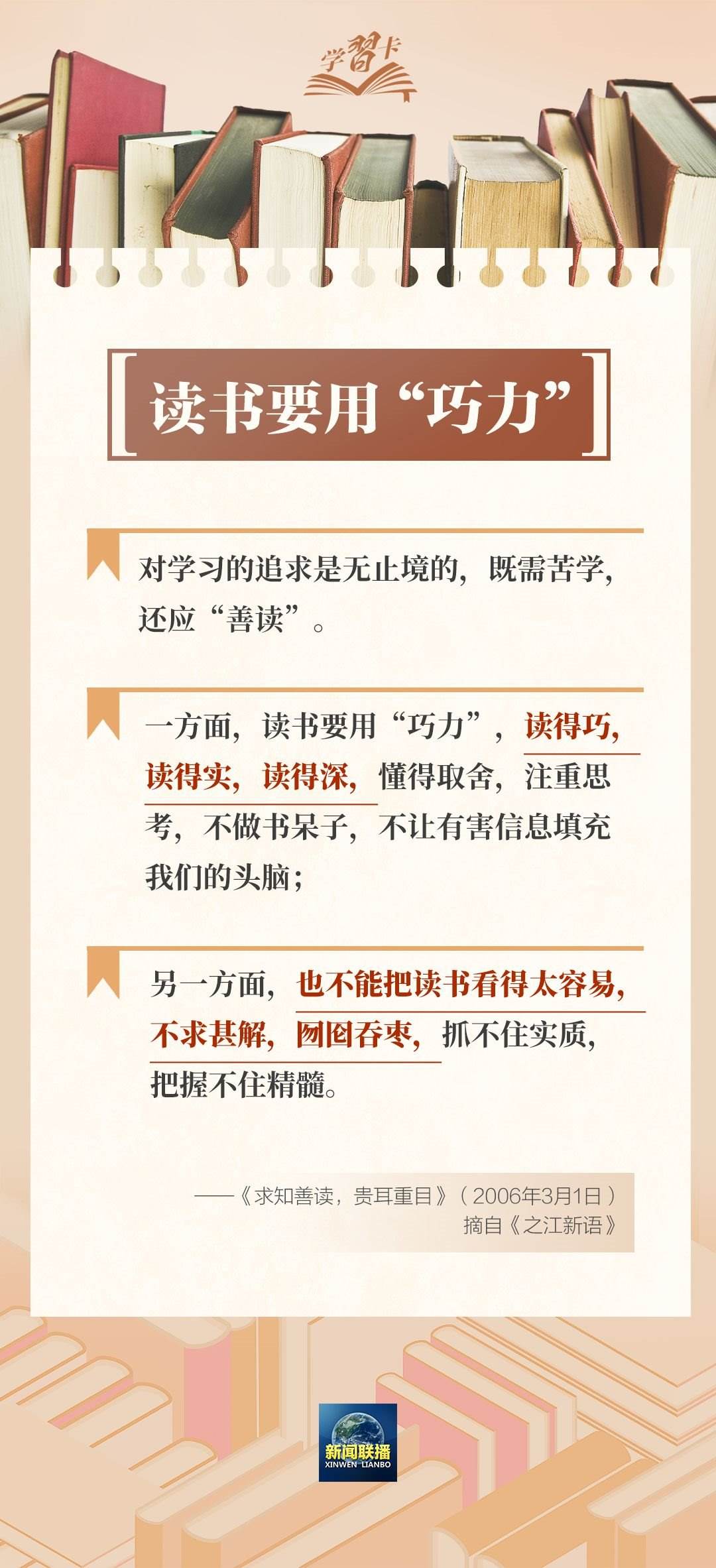 習近平總書記多次在文章和講話中談到讀書學習的感悟和重要性。如何高效閱讀?網(wǎng)絡閱讀要注意什么?理論學習要把握哪些關鍵點?一起學習↓