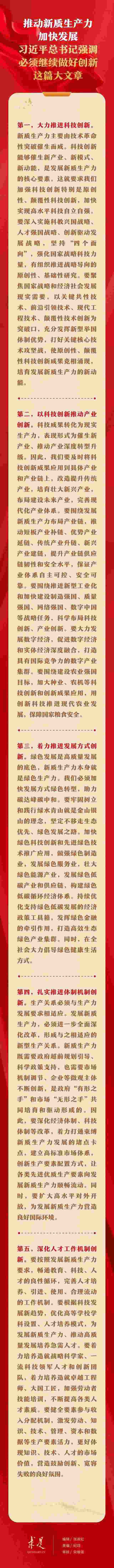 6月1日出版的第11期《求是》雜志刊發(fā)習(xí)近平總書記重要文章《發(fā)展新質(zhì)生產(chǎn)力是推動高質(zhì)量發(fā)展的內(nèi)在要求和重要著力點》。在這篇重要文章中,習(xí)近平總書記從科技創(chuàng)新、產(chǎn)業(yè)創(chuàng)新、發(fā)展方式創(chuàng)新、體制機制創(chuàng)新、人才工作機制創(chuàng)新等五個方面,對推動新質(zhì)生產(chǎn)力加快發(fā)展提出明確要求。