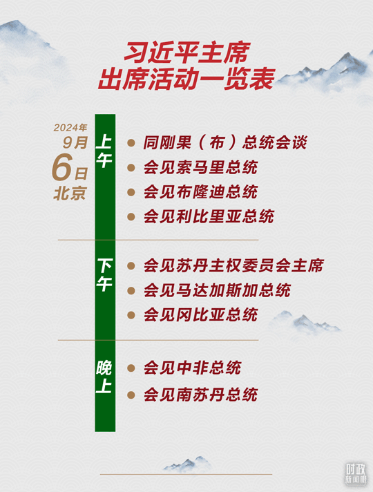 當天,習主席接連同9位非洲國家領(lǐng)導人會晤,發(fā)出積極落實峰會成果的鮮明信號。5天時間,42場會晤,“大國會客廳”見證中非友誼歷久彌新。