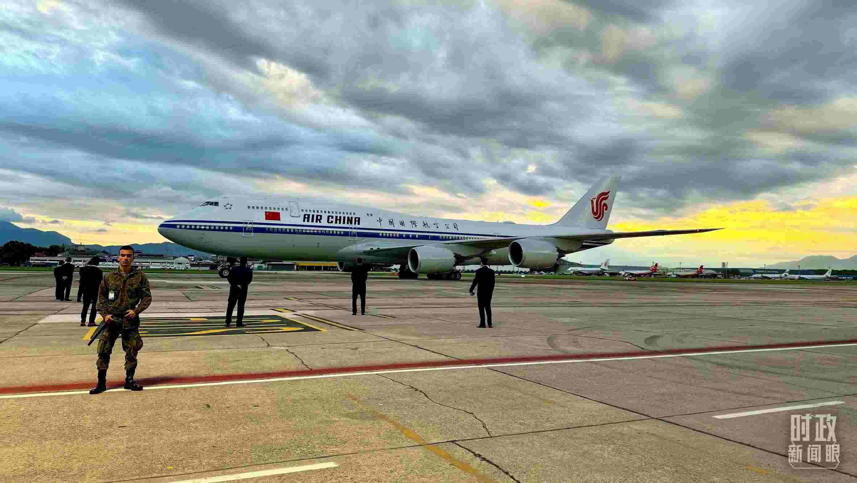 △習(xí)主席乘專機(jī)抵達(dá)里約熱內(nèi)盧。(總臺(tái)央視記者李錚拍攝)