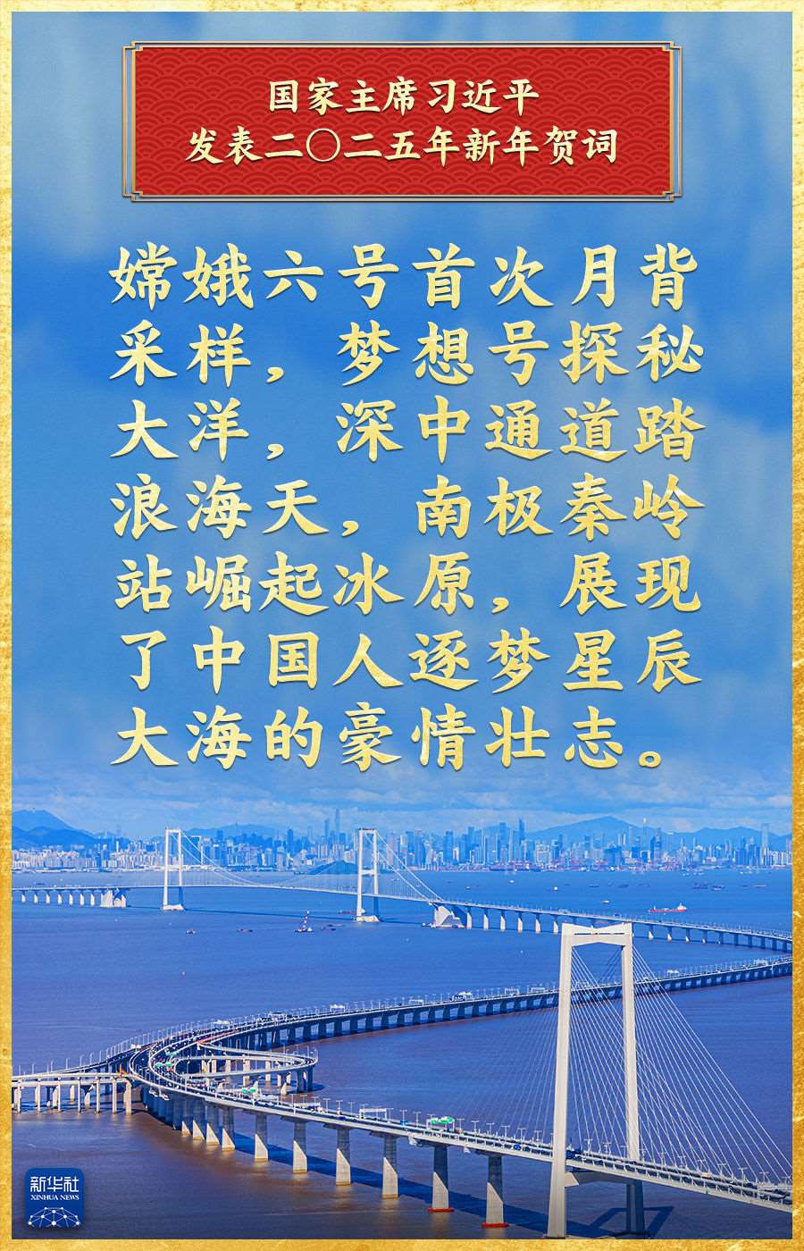 “新能源汽車年產(chǎn)量首次突破1000萬輛,集成電路、人工智能、量子通信等領(lǐng)域取得新成果”“嫦娥六號(hào)首次月背采樣,夢(mèng)想號(hào)探秘大洋,深中通道踏浪海天,南極秦嶺站崛起冰原”……這一年來的科技成就,總書記如數(shù)家珍。