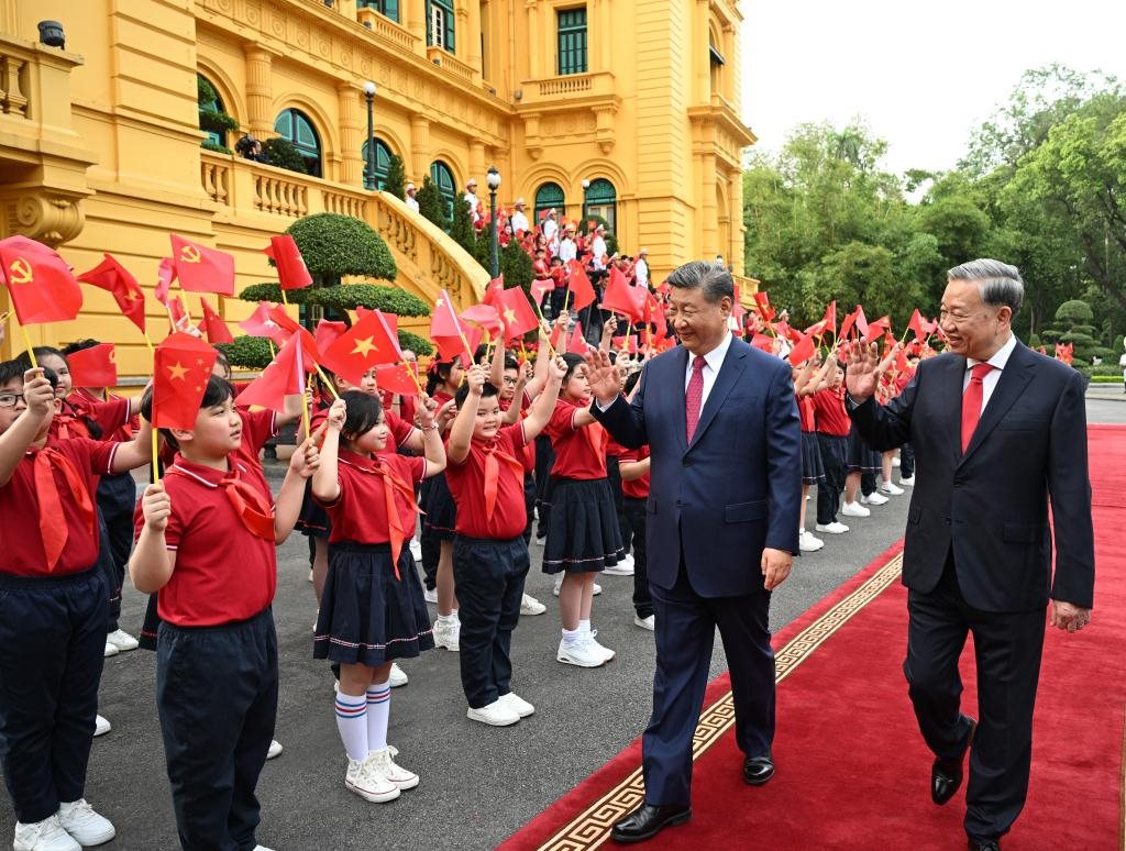 當(dāng)日下午,越共中央總書記蘇林為習(xí)近平舉行隆重歡迎儀式。