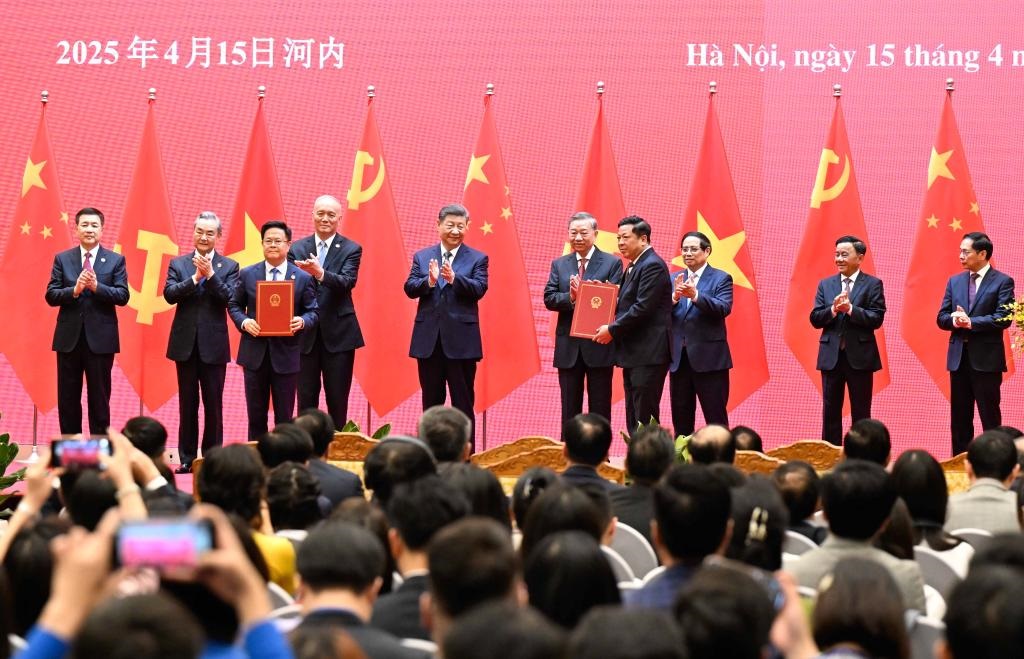 會談后,兩黨總書記共同見證中越雙方簽署的45份雙邊合作文本展示,涵蓋互聯(lián)互通、人工智能、海關(guān)檢驗檢疫、農(nóng)產(chǎn)品貿(mào)易、文化和體育、民生、人力資源開發(fā)、媒體等領(lǐng)域。