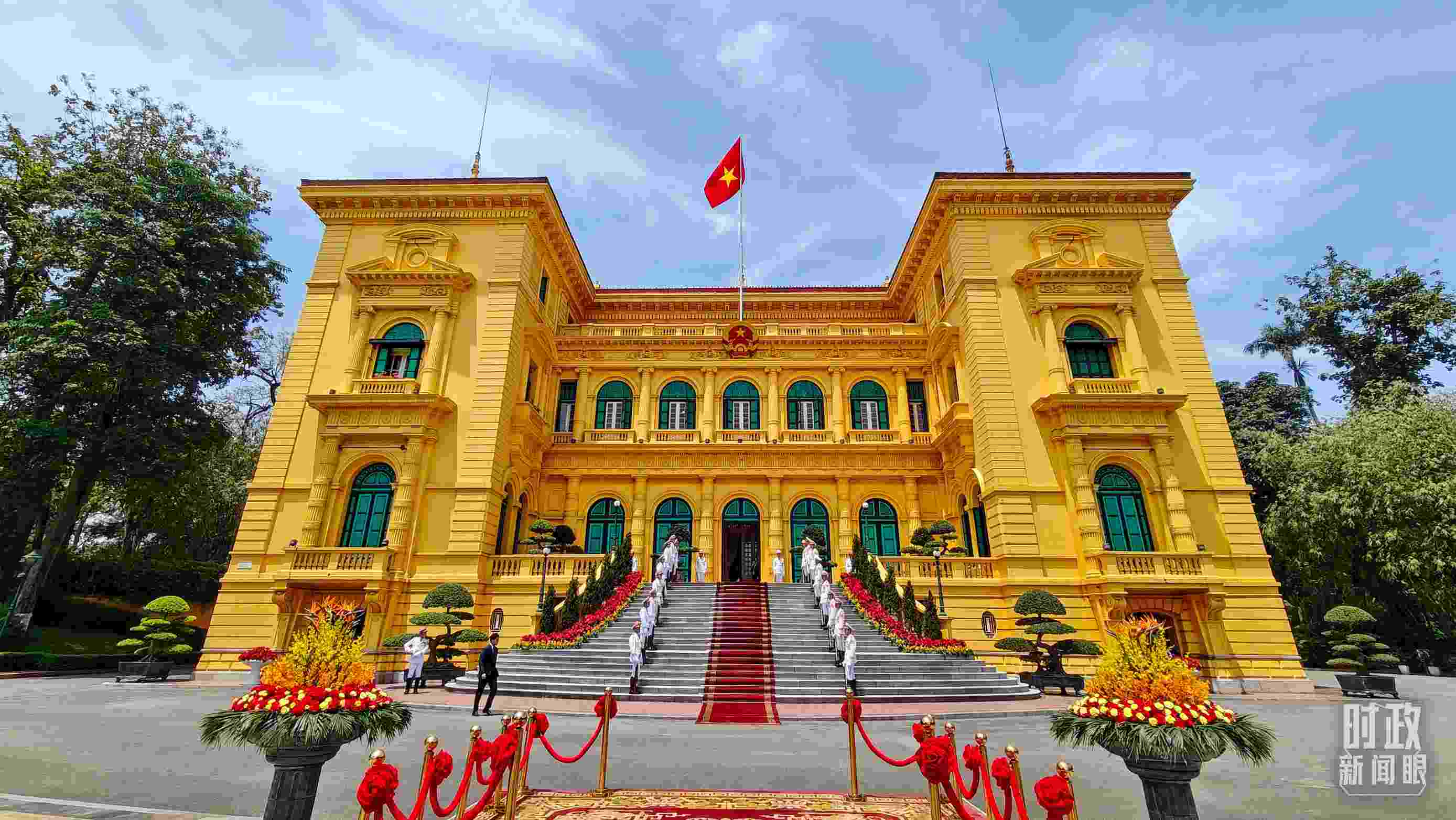 △ 同梁強主席的會見在河內(nèi)主席府舉行。(總臺央視記者范一鳴拍攝)