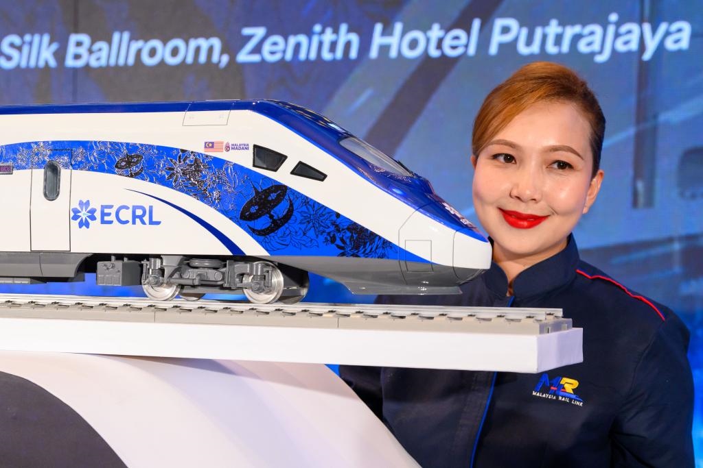 2024年12月18日,在馬來(lái)西亞普特拉賈亞,模特與新的動(dòng)車(chē)組模型合影。新華社發(fā)(張紋綜攝)