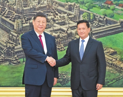 本報金邊4月17日電 (記者李婕、白元琪)4月17日晚,國家主席習(xí)近平同柬埔寨首相洪瑪奈在金邊和平大廈舉行會談。兩國領(lǐng)導(dǎo)人一致同意攜手構(gòu)建新時代全天候中柬命運共同體,宣布2025年為“中柬旅游年”。