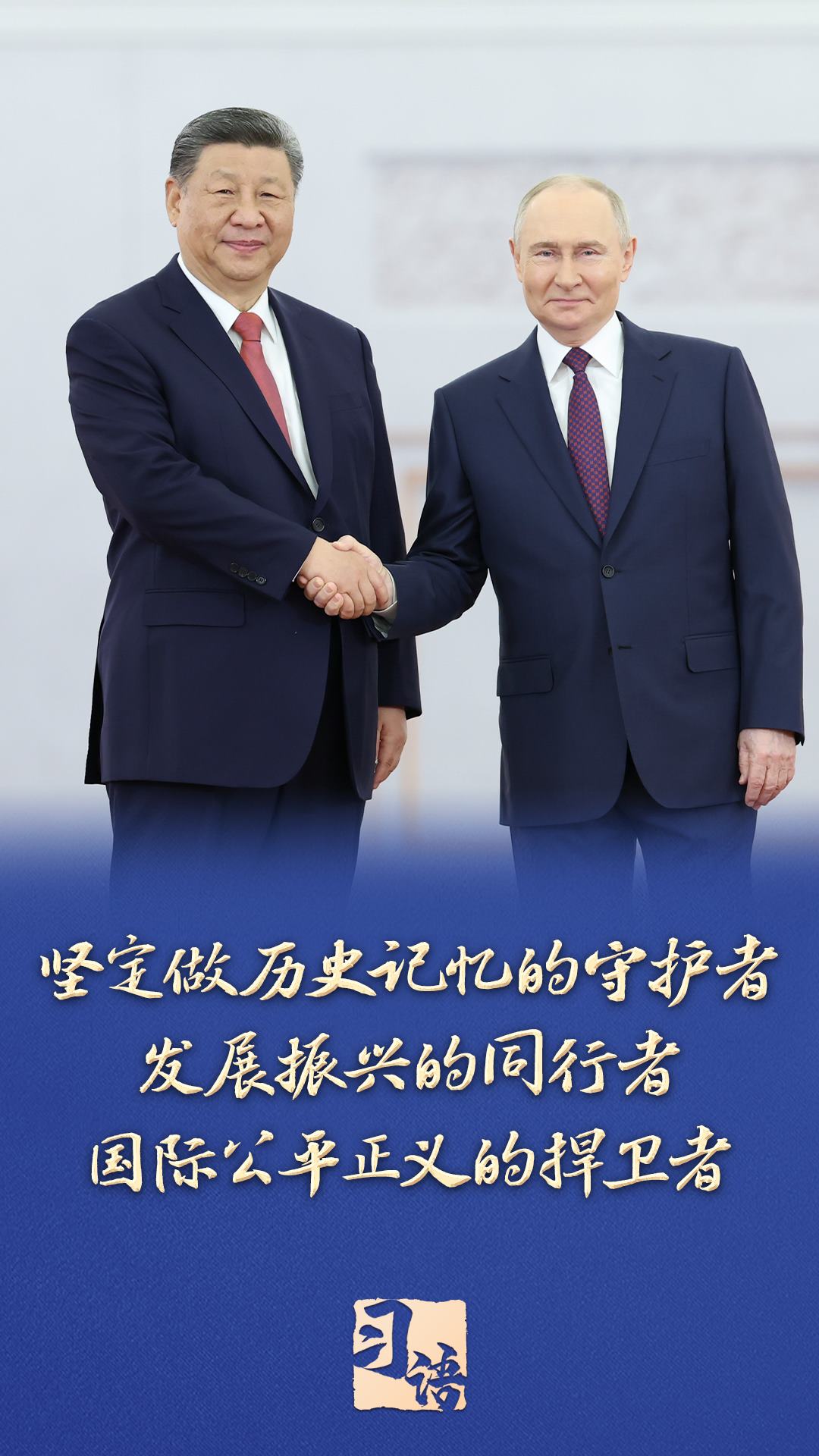 “80年前,中國(guó)人民和俄羅斯人民為世界反法西斯戰(zhàn)爭(zhēng)勝利共同作出了不可磨滅的歷史貢獻(xiàn),用鮮血凝成牢不可破的偉大友誼,為兩國(guó)關(guān)系高水平發(fā)展奠定了堅(jiān)實(shí)基礎(chǔ)?!?/p>
