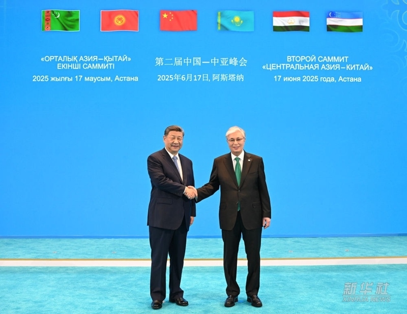 當?shù)貢r間6月17日下午,第二屆中國—中亞峰會在阿斯塔納獨立宮舉行。哈薩克斯坦總統(tǒng)托卡耶夫主持會議,中國國家主席習(xí)近平、吉爾吉斯斯坦總統(tǒng)扎帕羅夫、塔吉克斯坦總統(tǒng)拉赫蒙、土庫曼斯坦總統(tǒng)別爾德穆哈梅多夫、烏茲別克斯坦總統(tǒng)米爾濟約耶夫出席。