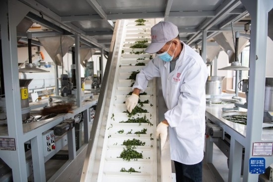 4月11日,在長沙望城烏山貢茶基地,工人抽查茶葉品質(zhì)。