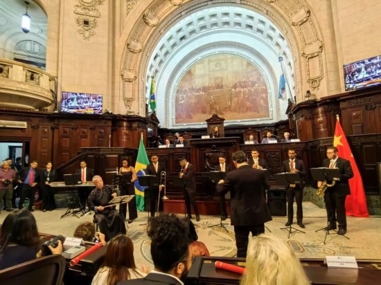 西洋樂器長笛、黑管、薩克斯和中國二胡,誰能想到這般跨界的組合,在二胡弦弓的牽引下竟能如此悅耳動聽,正如里約熱內(nèi)盧科帕卡巴納要塞管弦樂團(tuán)指揮路易斯·波特所說:“我們互相聆聽對方樂器的特質(zhì),不同的音樂語言交織在一起,更動人”。