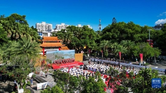 這是7月8日拍攝的五指山“上山爽一夏 故園·畢業(yè)季”暨州府故園文化節(jié)啟動儀式現(xiàn)場。