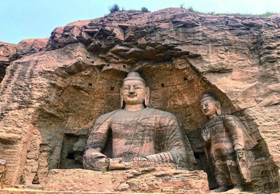 云岡石窟始建于1500多年前,代表了公元5世紀至6世紀時中國杰出的佛教石窟藝術(shù)?!霸谠茖咧锌梢悦魑乜吹?,在中國藝術(shù)固有的血脈中忽然滲入旺盛而有力的外來影響?!绷核汲筛锌?。
