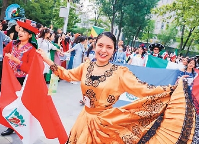中外學(xué)生身著民族服飾載歌載舞,活動(dòng)參加者現(xiàn)場(chǎng)體驗(yàn)絲網(wǎng)印刷、水拓工藝……日前,北京語(yǔ)言大學(xué)第十九屆世界文化節(jié)游園會(huì)舉辦。來(lái)自103個(gè)國(guó)家和地區(qū)的青年及社會(huì)各界人士同聚北語(yǔ),感受文化交融的魅力。