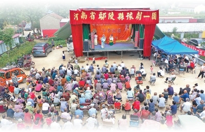 傍晚時(shí)分,天氣漸漸涼爽。河南許昌鄢陵縣彭店鎮(zhèn)謝坊村,村委會(huì)大院擠滿了人。72歲的老戲迷趙培龍手搖蒲扇,守在戲臺(tái)最近的位置……聽(tīng)說(shuō)村里來(lái)了戲班,他早早備好小馬扎,“每隔一段時(shí)間,就想聽(tīng)聽(tīng)劇團(tuán)的戲,好著哩!”