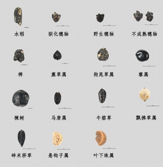 下湯遺址出土上山文化時(shí)期植物遺存。(全國十大考古新發(fā)現(xiàn)活動(dòng)辦公室供圖)