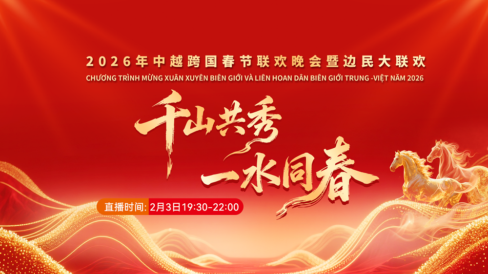 【直播簡介】2月2日至2月3日,2026年中越跨國春節(jié)聯(lián)歡晚會暨邊民大聯(lián)歡活動相繼在越南老街省、中國云南省紅河州舉行。兩國人民以文化為橋梁,以友誼為紐帶,進(jìn)一步鞏固中越地方友好合作關(guān)系,構(gòu)建具有戰(zhàn)略意義的中越命運(yùn)共同體。2月3日晚19:30至22:00,中央廣播電視總臺央視頻將聯(lián)動25家主流媒體,現(xiàn)場直播在紅河州河口縣舉行的2026年中越跨國春節(jié)聯(lián)歡晚會,帶您沉浸式體驗(yàn)兩國藝術(shù)家跨越國界的精彩文化盛宴,感受中越兩國人民“同飲一江水、攜手共發(fā)展”的深情厚誼,共度一個喜慶祥和、心手相連的跨國春夜。