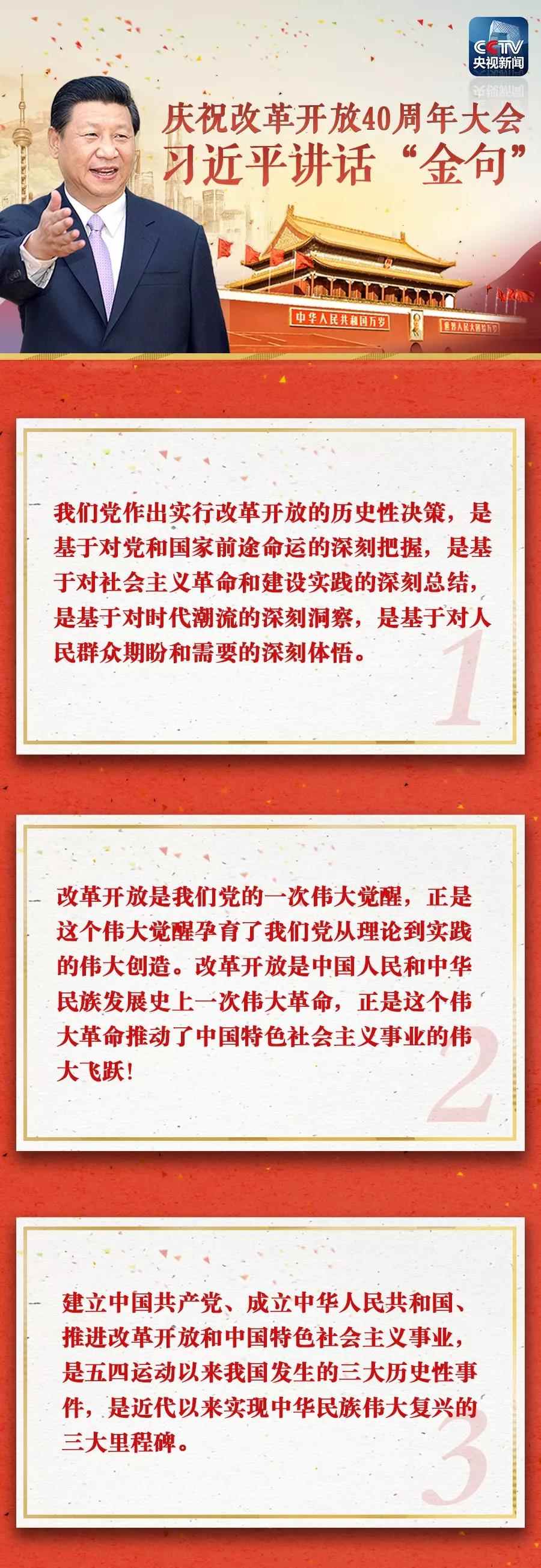 今天(12月18日)上午10時(shí),慶祝改革開(kāi)放40周年大會(huì)在人民大會(huì)堂舉行。中共中央總書(shū)記、國(guó)家主席、中央軍委主席習(xí)近平出席大會(huì)并發(fā)表重要講話。