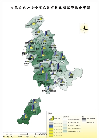 內(nèi)蒙古大興安嶺重點(diǎn)國有林區(qū)碳匯資源分布圖。