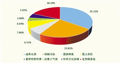 內(nèi)蒙古森工集團(tuán)2018年森林生態(tài)系統(tǒng)服務(wù)功能價(jià)值比例。