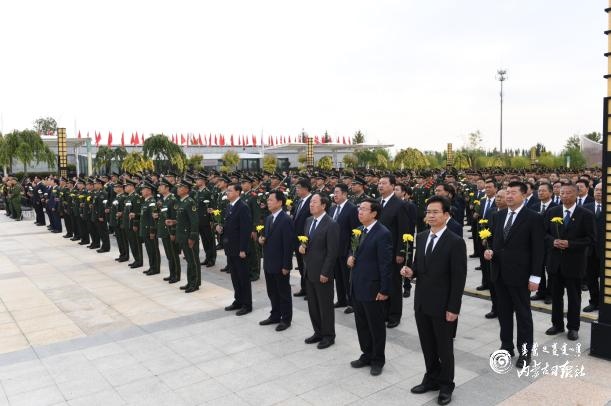 9月30日上午,烈士紀(jì)念日向人民英雄敬獻(xiàn)花籃儀式在呼和浩特隆重舉行。自治區(qū)黨委書記、人大常委會(huì)主任石泰峰,自治區(qū)黨委副書記、自治區(qū)主席布小林,自治區(qū)政協(xié)主席李秀領(lǐng)等自治區(qū)省軍級(jí)領(lǐng)導(dǎo)同志來到大青山紅色文化公園烈士紀(jì)念碑廣場,與首府各族各界代表一起出席儀式。內(nèi)蒙古日?qǐng)?bào)社融媒體記者 袁永紅 攝