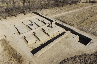 11月10日,航拍呼和浩特市玉泉區(qū)沙梁子村的西漢中晚期疑似大型糧倉建筑基址發(fā)掘現(xiàn)場。近日,內(nèi)蒙古文物考古研究所與中山大學(xué)組成的聯(lián)合考古隊(duì)在沙梁子村揭露一處大型夯土高臺(tái)建筑基址,根據(jù)出土的磚瓦材料及夯臺(tái)建筑的形制推測(cè),可能是一座西漢時(shí)期的大型倉儲(chǔ)建筑,距今約2000多年。這是我國迄今發(fā)現(xiàn)規(guī)模最大的漢代單體夯土高臺(tái)建筑。(內(nèi)蒙古日?qǐng)?bào)記者 孟和朝魯 實(shí)習(xí)生 郭明午 攝)