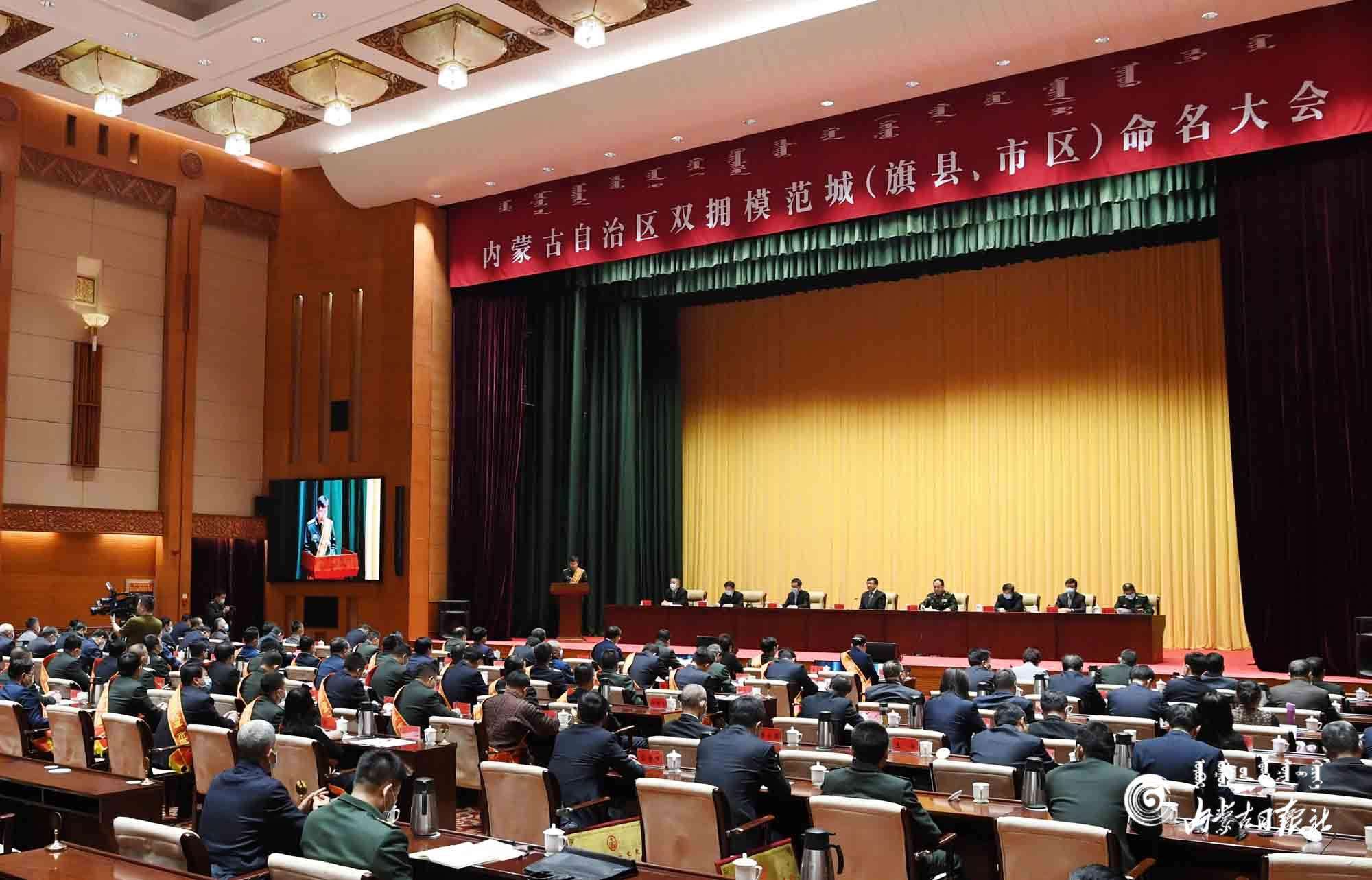 12月22日,內(nèi)蒙古自治區(qū)雙擁模范城(旗縣、市區(qū))命名大會在呼和浩特舉行。內(nèi)蒙古日報(bào)記者 袁永紅 攝