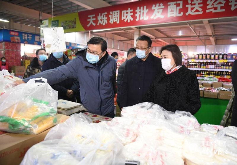 1月17日上午,自治區(qū)黨委副書(shū)記、自治區(qū)主席布小林來(lái)到呼和浩特市新城區(qū)福海興農(nóng)貿(mào)市場(chǎng),檢查冷鏈物流疫情防控措施、市場(chǎng)消毒、體溫檢測(cè)和群眾戴口罩等情況。內(nèi)蒙古日?qǐng)?bào)記者 韓卿立 攝
