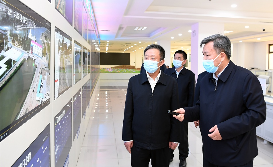 孫紹騁在河套灌區(qū)水量調度信息化中心調研。內蒙古日報社融媒體記者 袁永紅攝