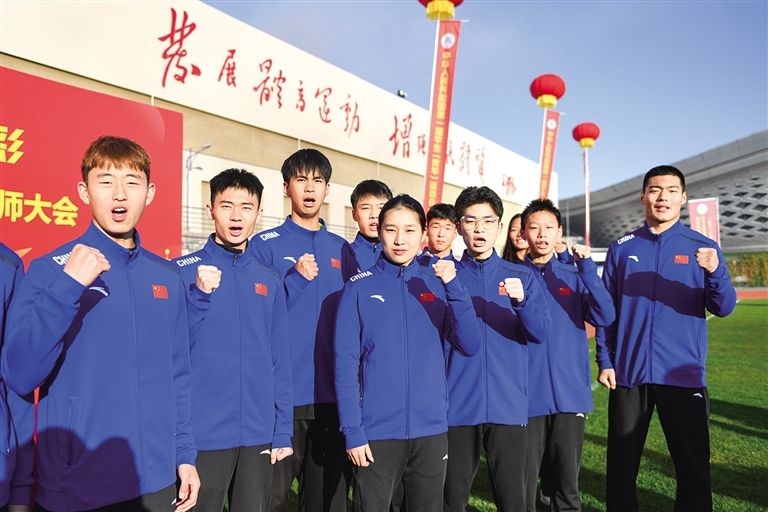 即將參加第一屆全國學生(青年)運動會的我區(qū)運動員在動員大會上高呼“團結(jié)拼搏、勇創(chuàng)佳績”