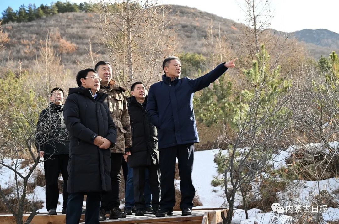 11月27日,自治區(qū)黨委書記孫紹騁在喀喇沁旗馬鞍山林場(chǎng)調(diào)研生態(tài)保護(hù)情況。草原全媒·內(nèi)蒙古新聞網(wǎng)記者 馬建荃 攝