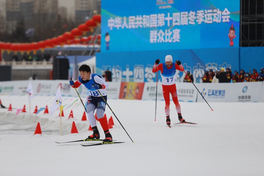 1月13日,“十四冬”群眾比賽在呼和浩特東河冰場開賽。在上午進行的男子越野滑雪4*1.5km預賽中,內(nèi)蒙古代表隊獲得小組第二。