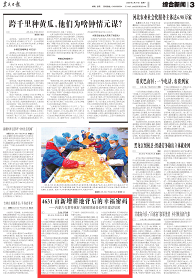 2025年2月24日,《農(nóng)民日?qǐng)?bào)》第3版刊發(fā)題為《4631畝新增耕地背后的幸福密碼——內(nèi)蒙古扎賚特旗好力保鎮(zhèn)增減掛鉤項(xiàng)目建設(shè)見聞》的文章,報(bào)道了內(nèi)蒙古興安盟扎賚特旗好力保鎮(zhèn)以土地整治為突破口,創(chuàng)新實(shí)施“五型安置”模式,讓水田村、先鋒村等4個(gè)行政村16個(gè)自然屯的898戶村民實(shí)現(xiàn)從“憂居”到“優(yōu)居”的跨越,村民過上了“出門種地,回家住樓”的新生活。