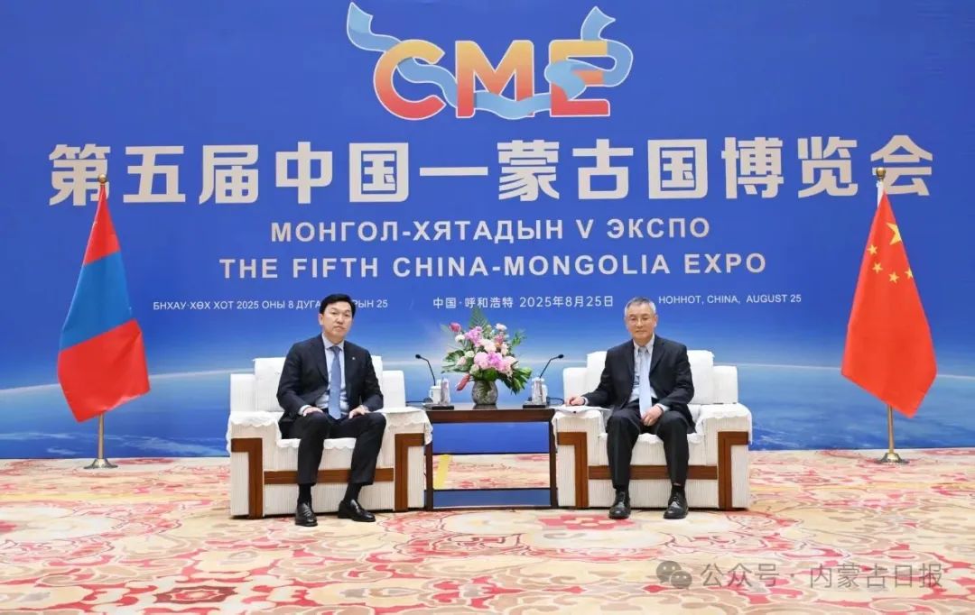 8月24日,全國人大常委會(huì)副委員長(zhǎng)、民進(jìn)中央主席蔡達(dá)峰在呼和浩特會(huì)見前來出席第五屆中國—蒙古國博覽會(huì)的蒙古國第一副總理兼經(jīng)濟(jì)發(fā)展部部長(zhǎng)烏其爾勒一行。自治區(qū)黨委書記孫紹騁參加會(huì)見。草原云·內(nèi)蒙古新聞網(wǎng)記者 馬建兵 攝