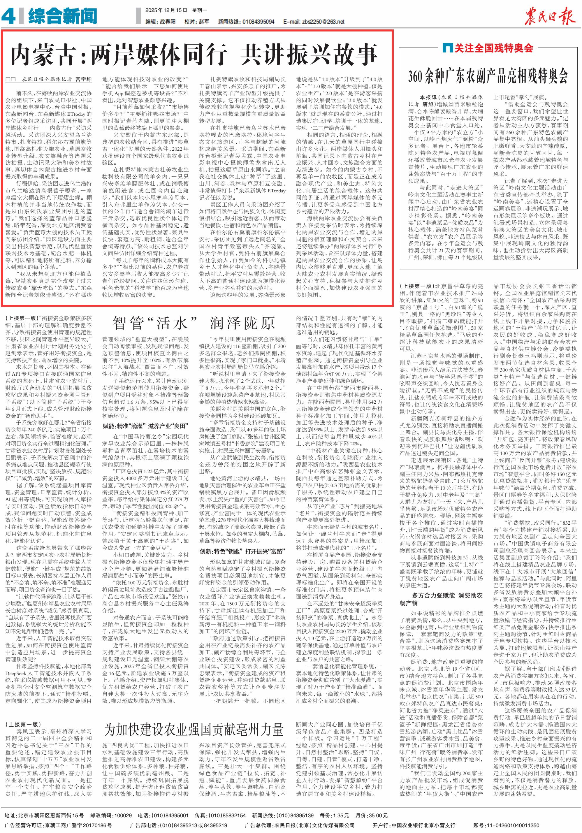 2025年12月15日《農(nóng)民日報》第4版刊發(fā)了《內(nèi)蒙古:兩岸媒體同行 共講振興故事》的文章,報道了前不久,在海峽兩岸農(nóng)業(yè)交流協(xié)會的組織下,來自農(nóng)民日報社、中國農(nóng)業(yè)電影電視中心、臺灣中國時報、東森新聞臺、東森新媒體ETtoday的多位記者組成采訪團(tuán),共同開展“兩岸媒體鄉(xiāng)村行——內(nèi)蒙古行”采訪采風(fēng)活動。兩岸媒體人用鏡頭和筆觸,共同記錄下內(nèi)蒙古鄉(xiāng)村在產(chǎn)業(yè)振興、人才回鄉(xiāng)、文旅融合方面的點(diǎn)滴進(jìn)步。這份共同的見證,將通過兩岸媒體的多元傳播,讓更多受眾感受到中國北方鄉(xiāng)村蘊(yùn)含的無限活力。