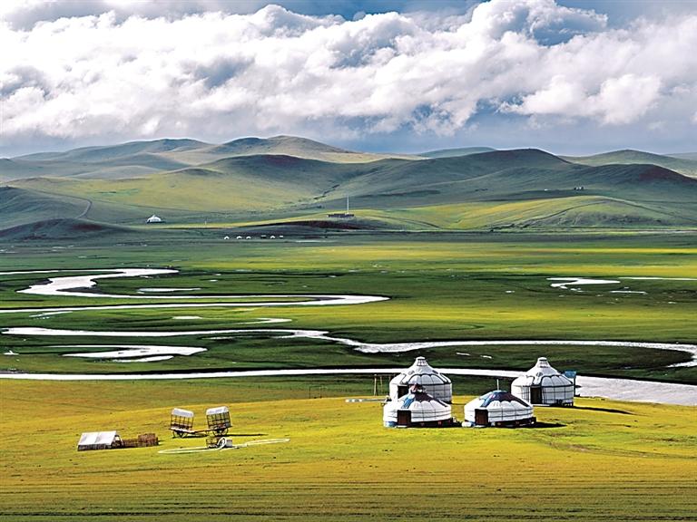 天似穹廬,籠蓋四野。夏秋季節(jié),走進敕勒川草原,綿延綠浪涌向遠方,在廣袤大地鋪展,與陰山山脈相接。“風吹草低見牛羊”的草原美景仿佛穿越千年而來,依舊震撼人心。