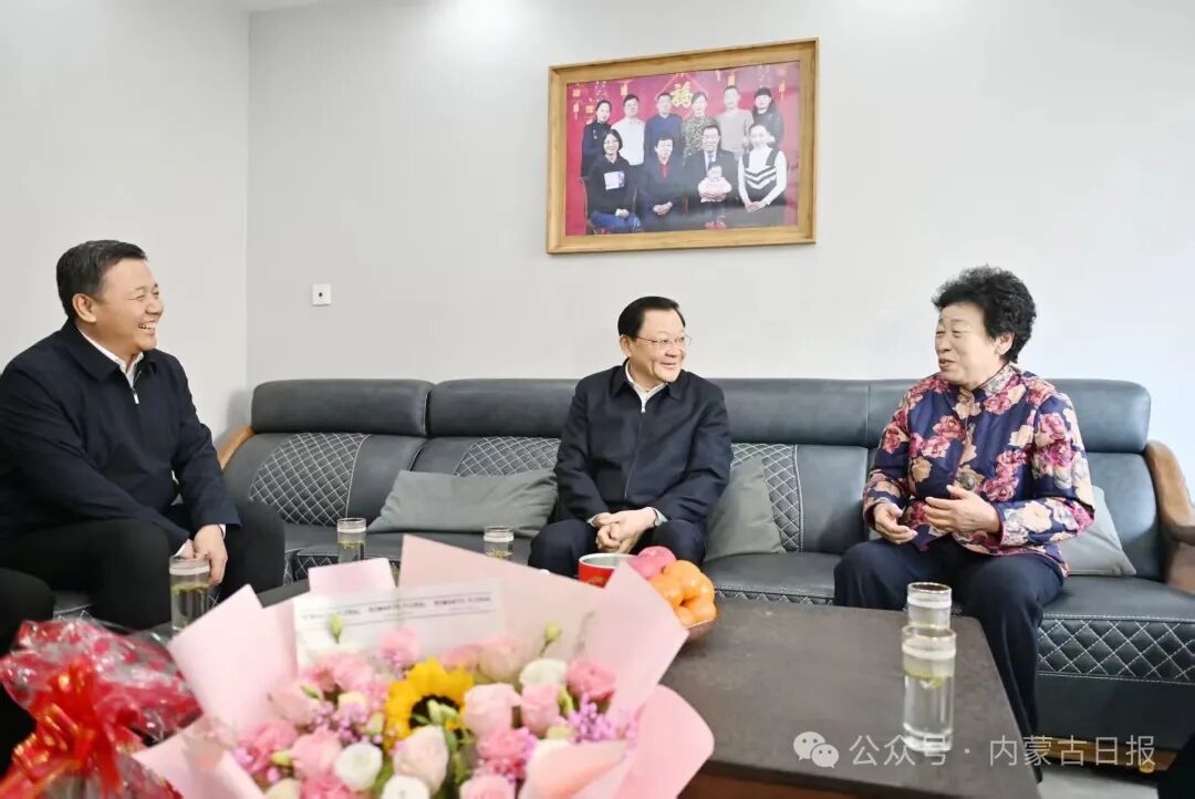2月10日,自治區(qū)黨委書記、人大常委會(huì)主任王偉中向老黨員李玉蘭送上新春祝福。草原云·內(nèi)蒙古新聞網(wǎng)記者 馬建兵 攝