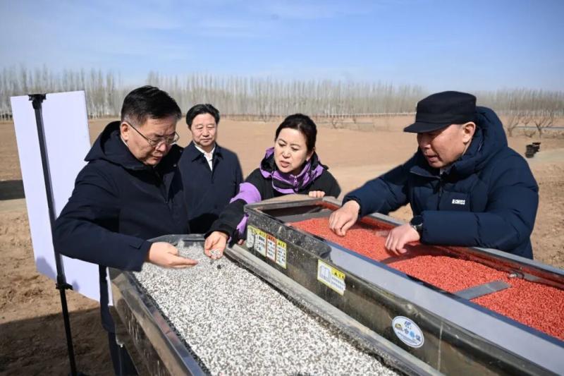 3月15日,包鋼在臨河農(nóng)場詳細了解種子、肥料等農(nóng)資準備,詢問高標準農(nóng)田建設(shè)進展和優(yōu)質(zhì)農(nóng)產(chǎn)品生產(chǎn)銷售情況。草原云·內(nèi)蒙古新聞網(wǎng)記者 韓卿立 攝