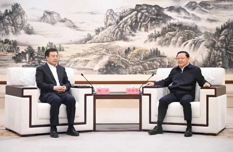 4月12日,自治區(qū)黨委書記、人大常委會(huì)主任王偉中在呼和浩特會(huì)見(jiàn)新華通訊社社長(zhǎng)、黨組書記傅華一行。