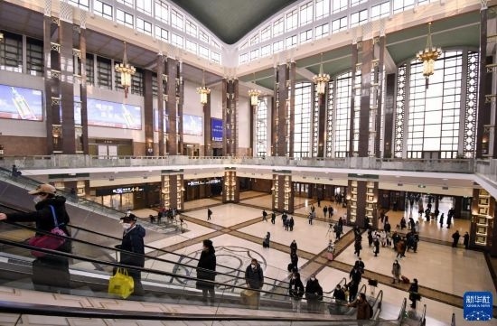 北京火車(chē)站在保持歷史原貌的前提下對(duì)候車(chē)大廳的裝飾、燈光等進(jìn)行了升級(jí)改造(2023年2月17日攝)。